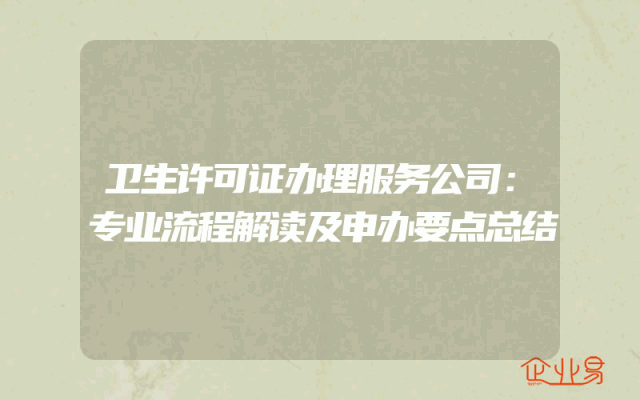 - 卫生许可证办理服务公司:专业流程解读及申办要点总结
