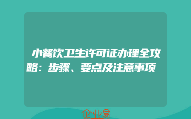 - 小餐饮卫生许可证办理全攻略:步骤、要点及注意事项