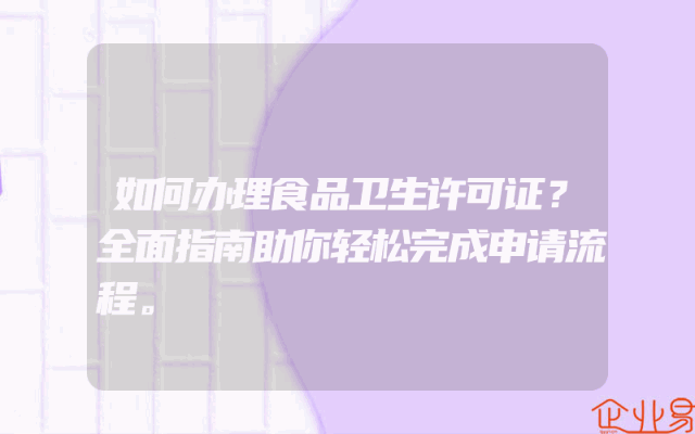 - 如何办理食品卫生许可证?全面指南助你轻松完成申请流程。