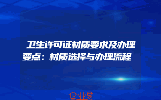 - 卫生许可证材质要求及办理要点:材质选择与办理流程