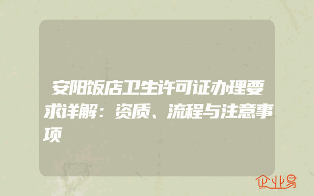 - 安阳饭店卫生许可证办理要求详解:资质、流程与注意事项