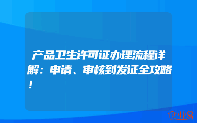 - 产品卫生许可证办理流程详解:申请、审核到发证全攻略!