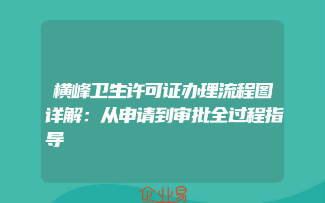 - 横峰卫生许可证办理流程图详解:从申请到审批全过程指导