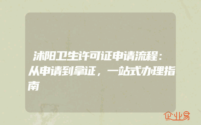 - 沭阳卫生许可证申请流程:从申请到拿证,一站式办理指南