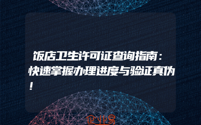 - 饭店卫生许可证查询指南:快速掌握办理进度与验证真伪!一、了解饭店卫生许可证的重要性饭店卫生许可证是餐饮服务行业必备的法定证件,它直接关系到餐厅的合法经营和消费者的饮食安全。因此,查询饭店卫生许可证的办理进度和真伪验证显得尤为重要。二、查询办