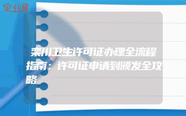 - 栾川卫生许可证办理全流程指南:许可证申请到颁发全攻略