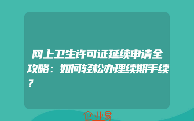 - 网上卫生许可证延续申请全攻略:如何轻松办理续期手续?