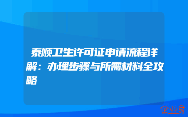 - 泰顺卫生许可证申请流程详解:办理步骤与所需材料全攻略