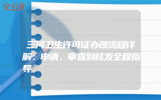 - 三河卫生许可证办理流程详解:申请、审查到核发全程指导