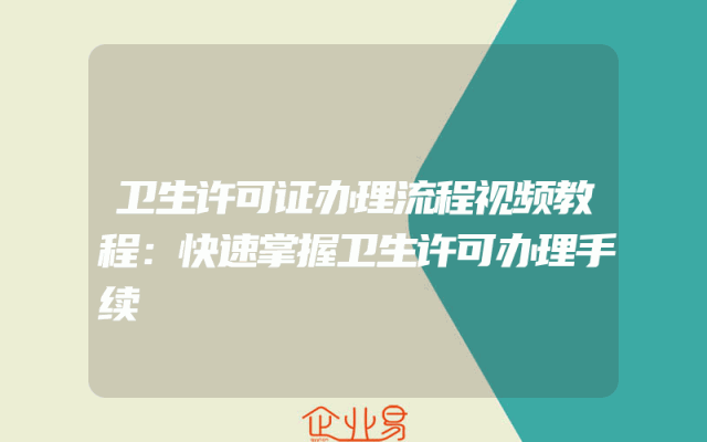 - 卫生许可证办理流程视频教程:快速掌握卫生许可办理手续