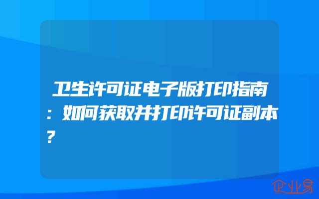 - 卫生许可证电子版打印指南:如何获取并打印许可证副本?