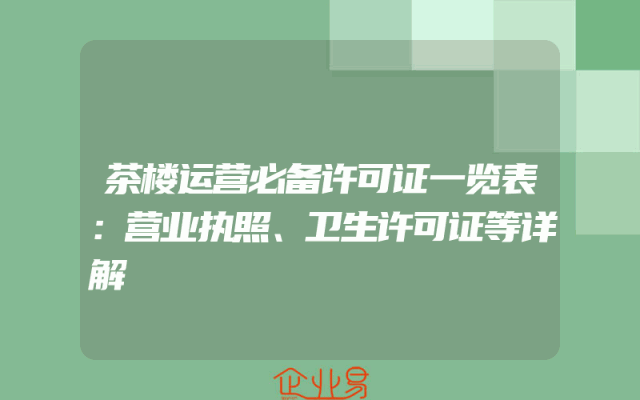 - 茶楼运营必备许可证一览表:营业执照、卫生许可证等详解
