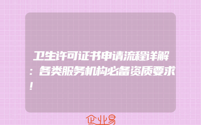 - 卫生许可证书申请流程详解:各类服务机构必备资质要求!