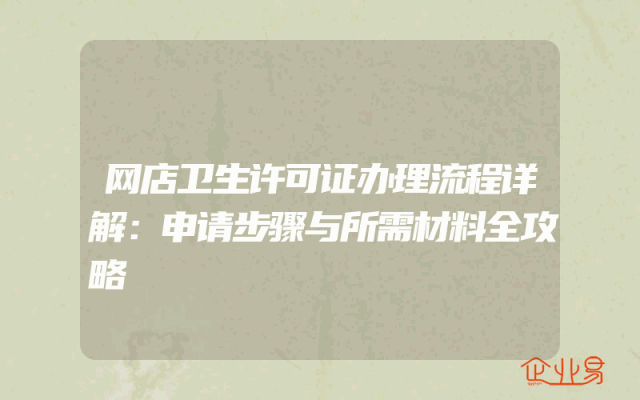 - 网店卫生许可证办理流程详解:申请步骤与所需材料全攻略