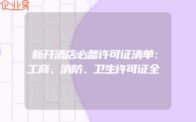 - 新开酒店必备许可证清单:工商、消防、卫生许可证全