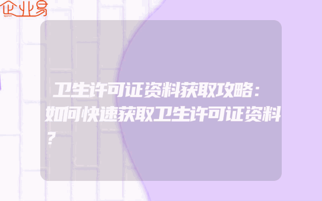 - 卫生许可证资料获取攻略:如何快速获取卫生许可证资料?