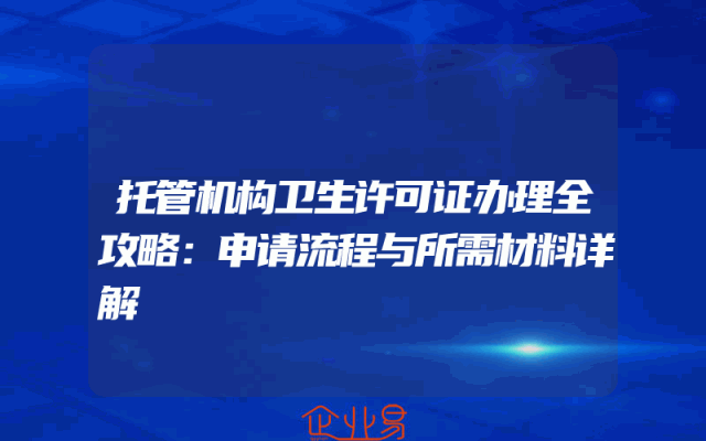 - 托管机构卫生许可证办理全攻略:申请流程与所需材料详解