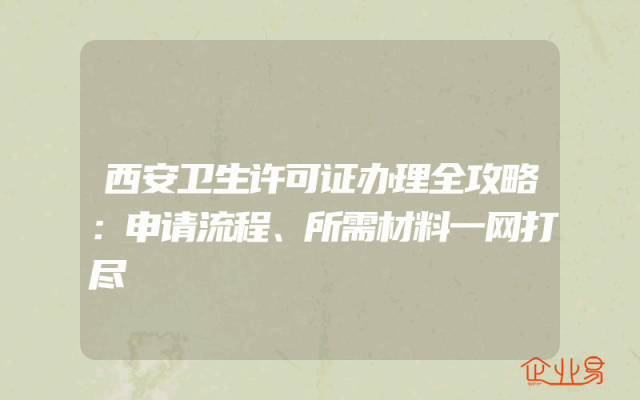 - 西安卫生许可证办理全攻略:申请流程、所需材料一网打尽