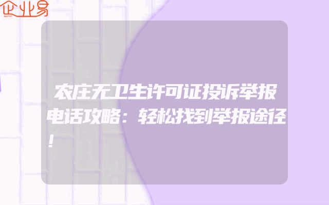 - 农庄无卫生许可证投诉举报电话攻略:轻松找到举报途径!