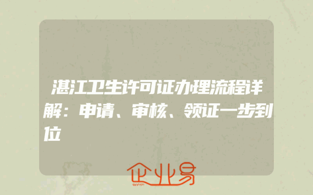 - 湛江卫生许可证办理流程详解:申请、审核、领证一步到位