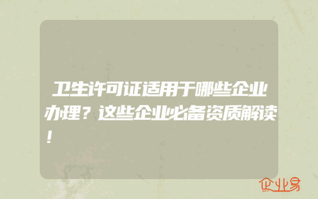 - 卫生许可证适用于哪些企业办理?这些企业必备资质解读!