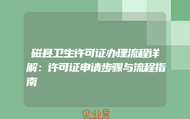 - 磁县卫生许可证办理流程详解:许可证申请步骤与流程指南