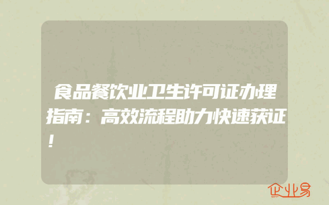 - 食品餐饮业卫生许可证办理指南:高效流程助力快速获证!