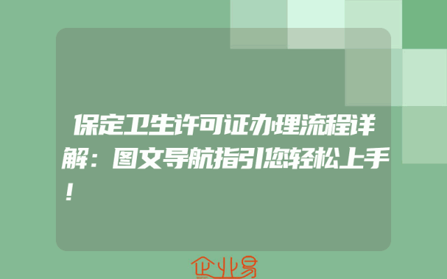 - 保定卫生许可证办理流程详解:图文导航指引您轻松上手!