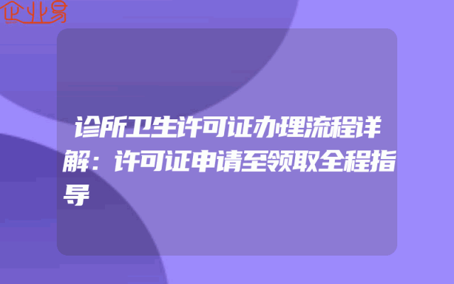 - 诊所卫生许可证办理流程详解:许可证申请至领取全程指导