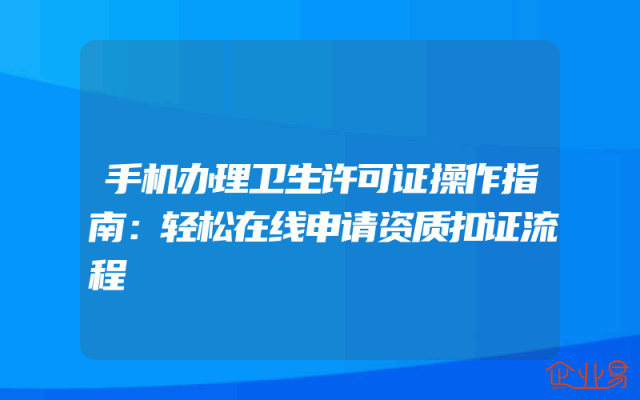 - 手机办理卫生许可证操作指南:轻松在线申请资质扣证流程