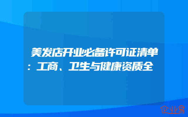 - 美发店开业必备许可证清单:工商、卫生与健康资质全