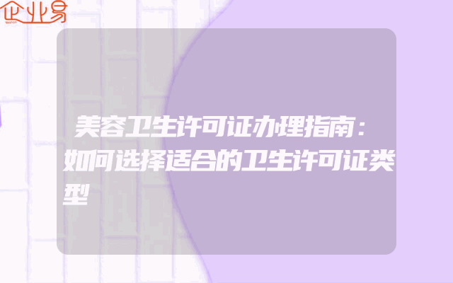 - 美容卫生许可证办理指南:如何选择适合的卫生许可证类型