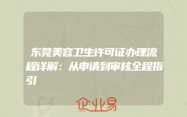 - 东莞美容卫生许可证办理流程详解:从申请到审核全程指引