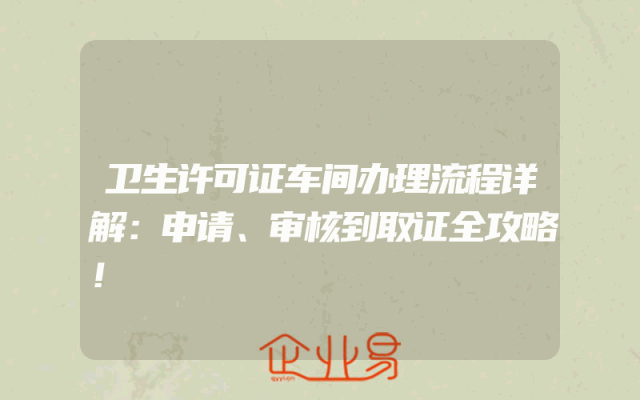 - 卫生许可证车间办理流程详解:申请、审核到取证全攻略!