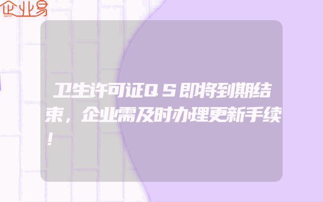 - 卫生许可证QS即将到期结束,企业需及时办理更新手续!