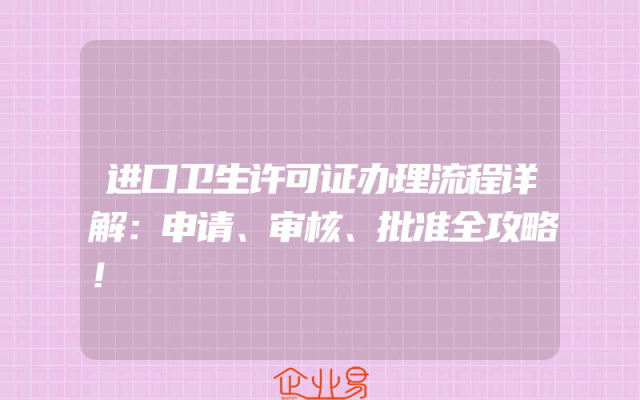 - 进口卫生许可证办理流程详解:申请、审核、批准全攻略!