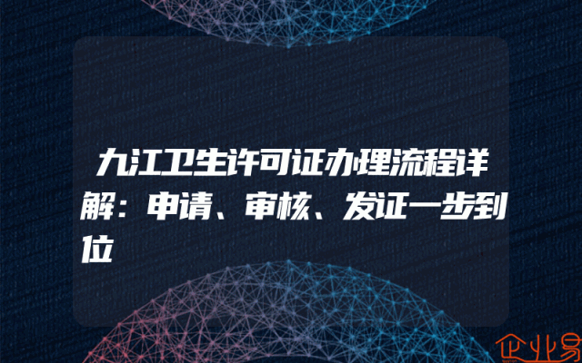 - 九江卫生许可证办理流程详解:申请、审核、发证一步到位