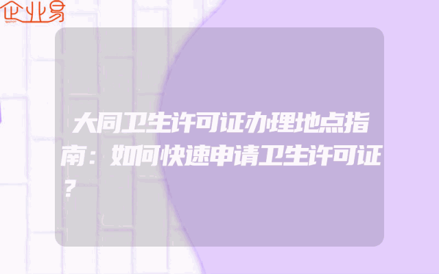 - 大同卫生许可证办理地点指南:如何快速申请卫生许可证?