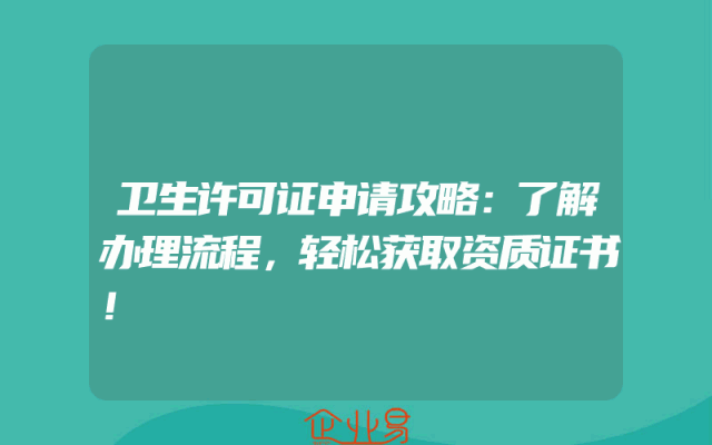 - 卫生许可证申请攻略:了解办理流程,轻松获取资质证书!