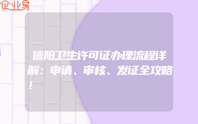 - 信阳卫生许可证办理流程详解:申请、审核、发证全攻略!