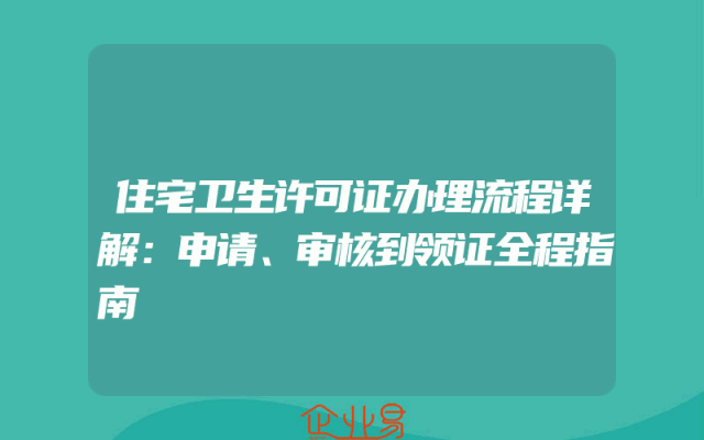 - 住宅卫生许可证办理流程详解:申请、审核到领证全程指南
