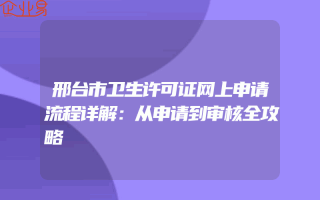 - 邢台市卫生许可证网上申请流程详解:从申请到审核全攻略