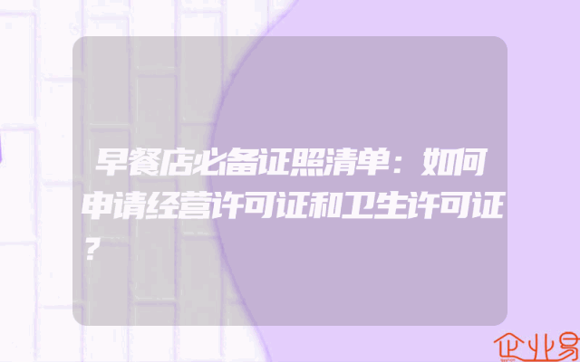 - 早餐店必备证照清单:如何申请经营许可证和卫生许可证?
