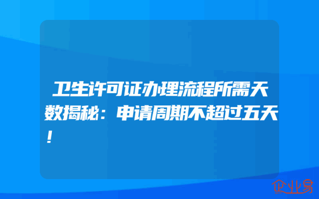 - 卫生许可证办理流程所需天数揭秘:申请周期不超过五天!