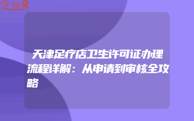 - 天津足疗店卫生许可证办理流程详解:从申请到审核全攻略