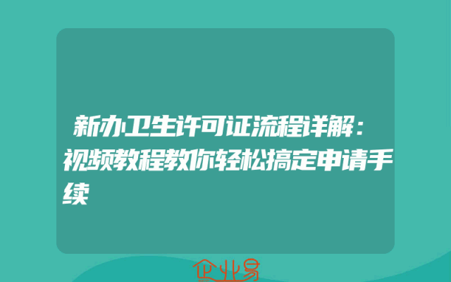 - 新办卫生许可证流程详解:视频教程教你轻松搞定申请手续