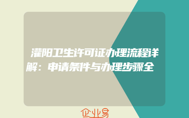 - 灌阳卫生许可证办理流程详解:申请条件与办理步骤全