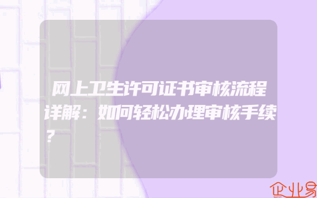 - 网上卫生许可证书审核流程详解:如何轻松办理审核手续?