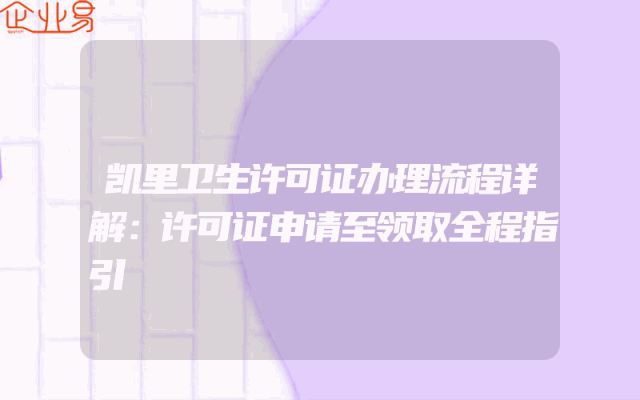 - 凯里卫生许可证办理流程详解:许可证申请至领取全程指引