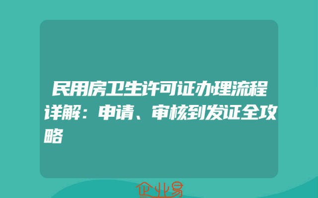 - 民用房卫生许可证办理流程详解:申请、审核到发证全攻略